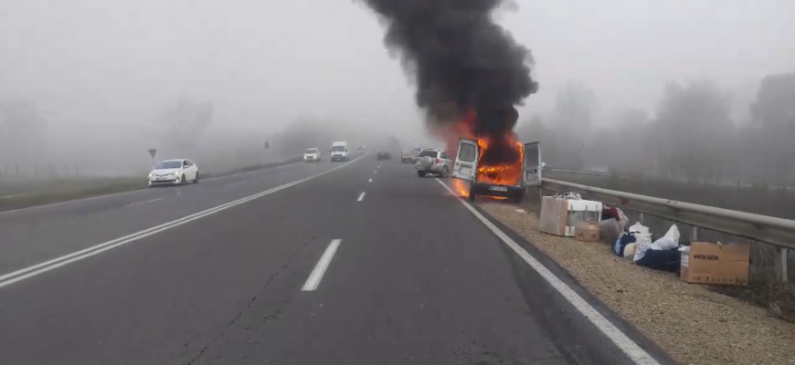 Mai mulți martori oculari au filmat automobilul tras pe dreapta și care era cuprins de flăcări mari.