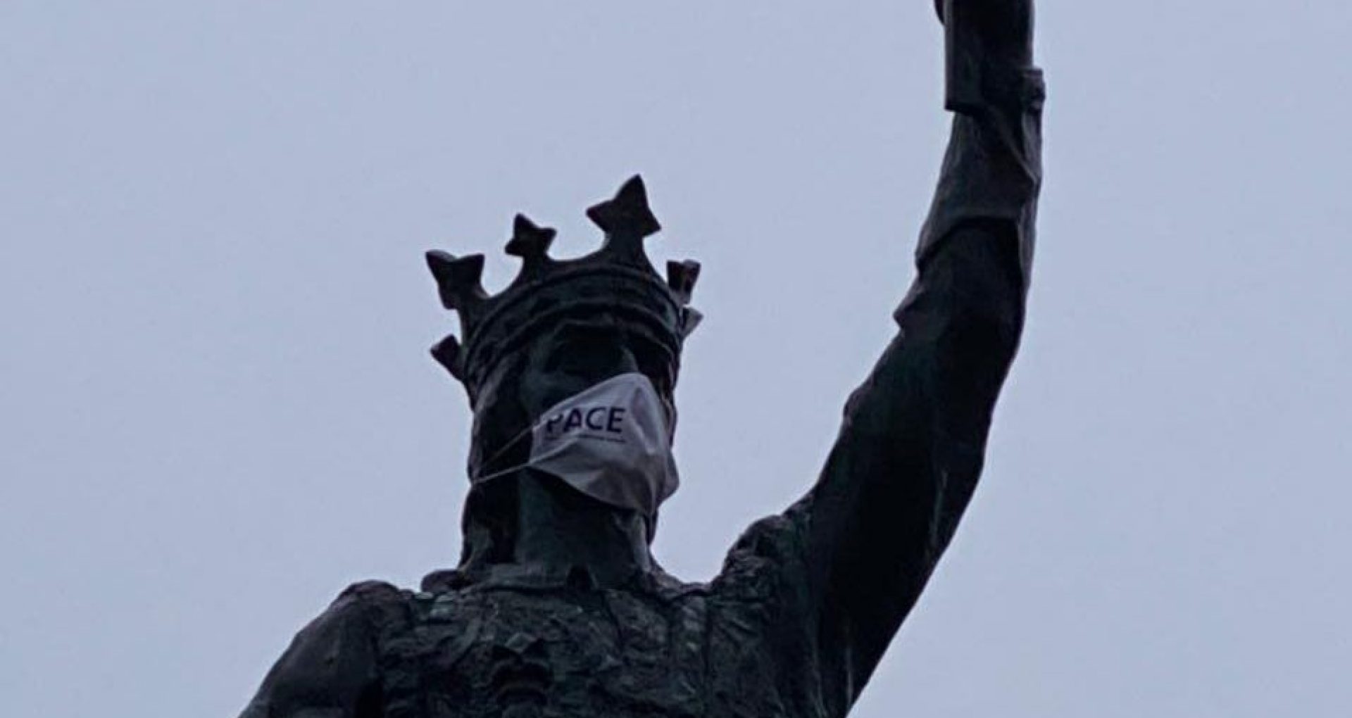 Membrii Partidului Acasă Construim Europa (PACE), condus de fostul șef adjunct al Inspectoratului General de Poliție (IGP), Gheorghe Cavcaliuc, i-au pus mască de protecție monumentului lui Ștefan cel Mare din centrul Capitalei.