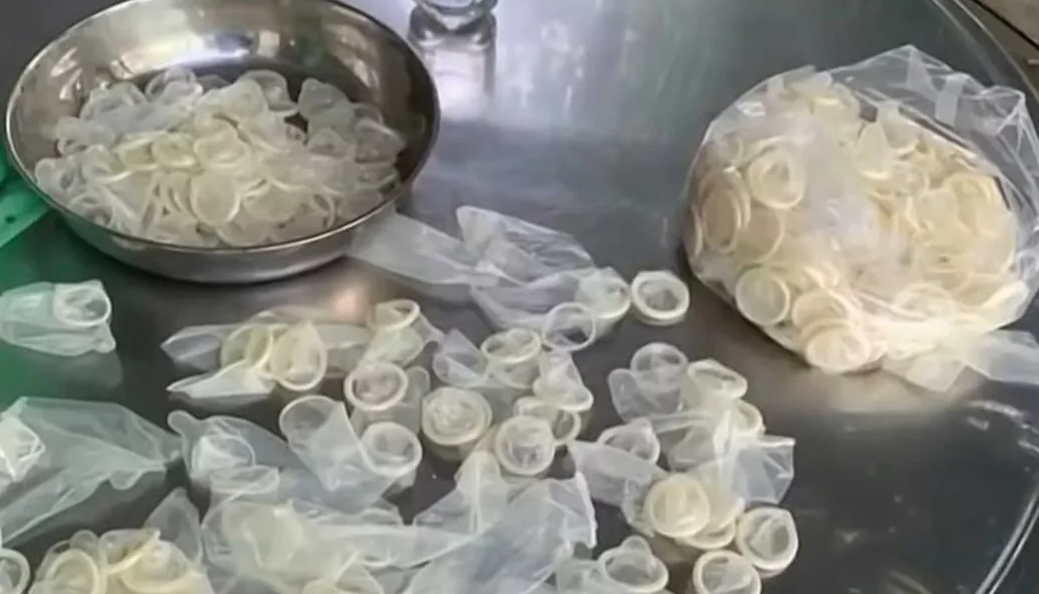 Femeia reținută a spus că a primit 0,17 dolari pentru fiecare kilogram de prezervative reciclate pe care le-a produs.