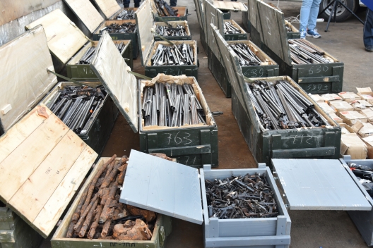 Astăzi, 25 noiembrie, a avut loc cel de-al șaptelea exercițiu organizat și desfășurat de Inspectoratul General al Poliției cu sprijinul UE și PNUD, în cadrul căruia au fost distruse prin topire 2119 arme, 50 000 de gloanțe de cartuș și 142 accesorii și componente ale armelor.