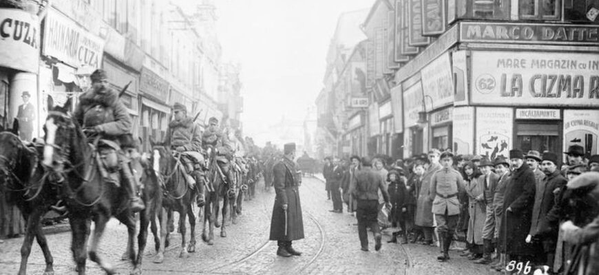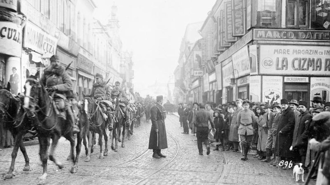 În jurul orei 15, trupele Puterilor Centrale defilează pe Calea Victoriei, întâmpinate cu flori şi entuziasm de doamne şi domnişoare aparţinând în mare măsură comunităţilor germană şi austriacă. Mareşalul Mackensen soseşte într-un automobil decapotabil şi e surprins să vadă în centru prăvălii deschise şi cafenele pline. Va nota ulterior: