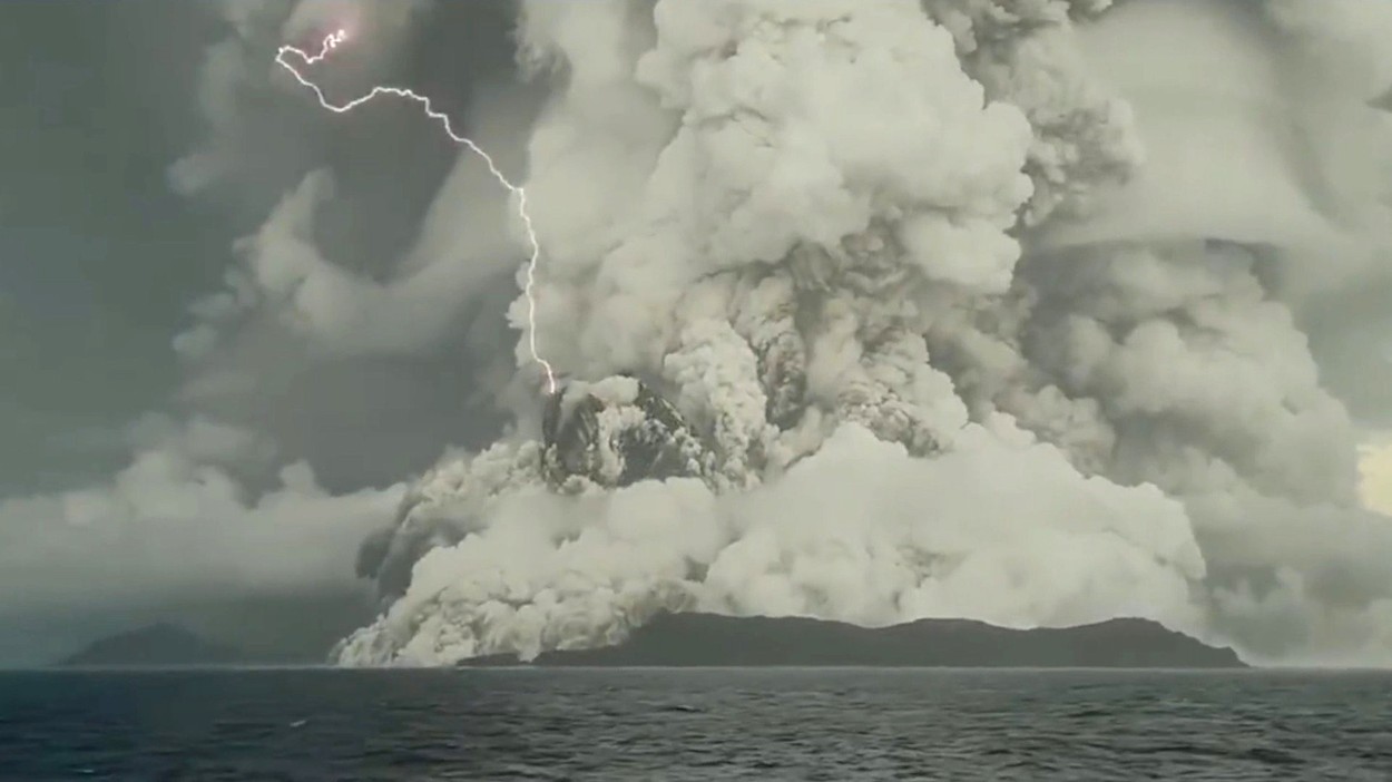 Vulcanul Hunga Tonga-Hunga Ha’apai a expulzat o ciupercă de fum cu o înălţime de până la 40 de kilometri în timpul erupţiei ce a fost auzită până în Alaska, la peste 9.000 de kilometri distanţă şi care a declanşat un tsunami, scrie Agerpres.