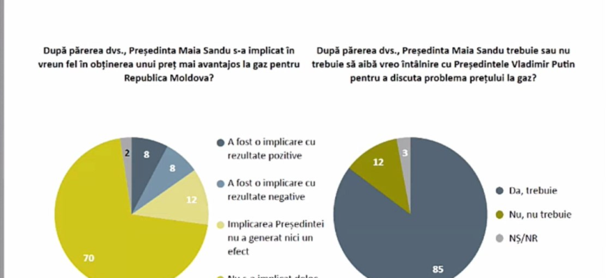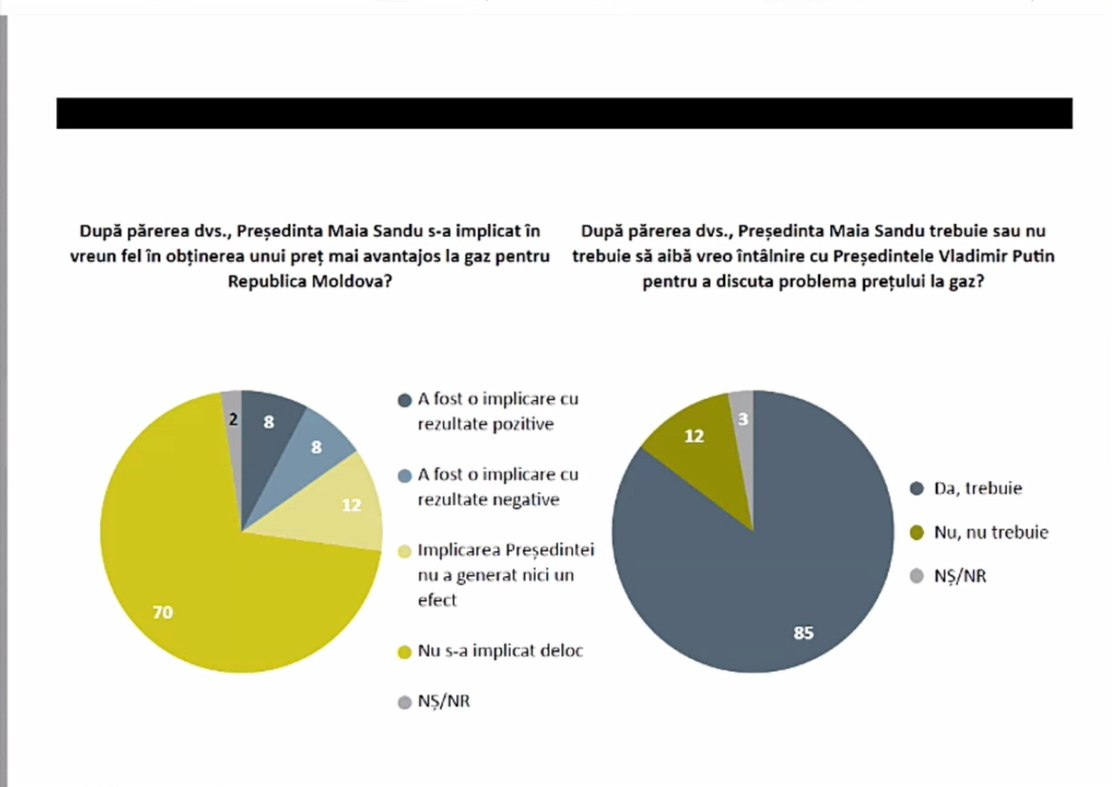 85% dintre respondenți cred că Maia Sandu ar fi trebuit personal să aibă o întâlnire cu Vladimir Putin pentru a discuta prețul la gaz, iar 12% dintre cetățeni văd acest lucru negativ.