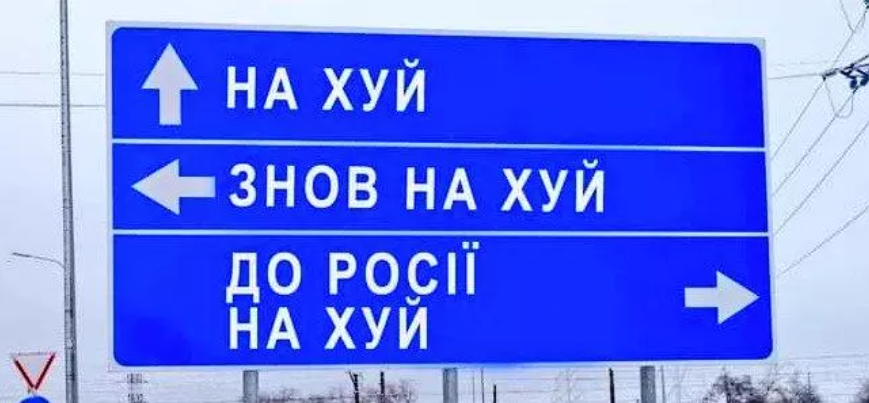 ”Înainte: duceți-vă dracului. La stânda: duceți-vă dracului din nou. La dreapta: Duceți-vă dracului în Rusia”, scrie pe panoul din Odesa.