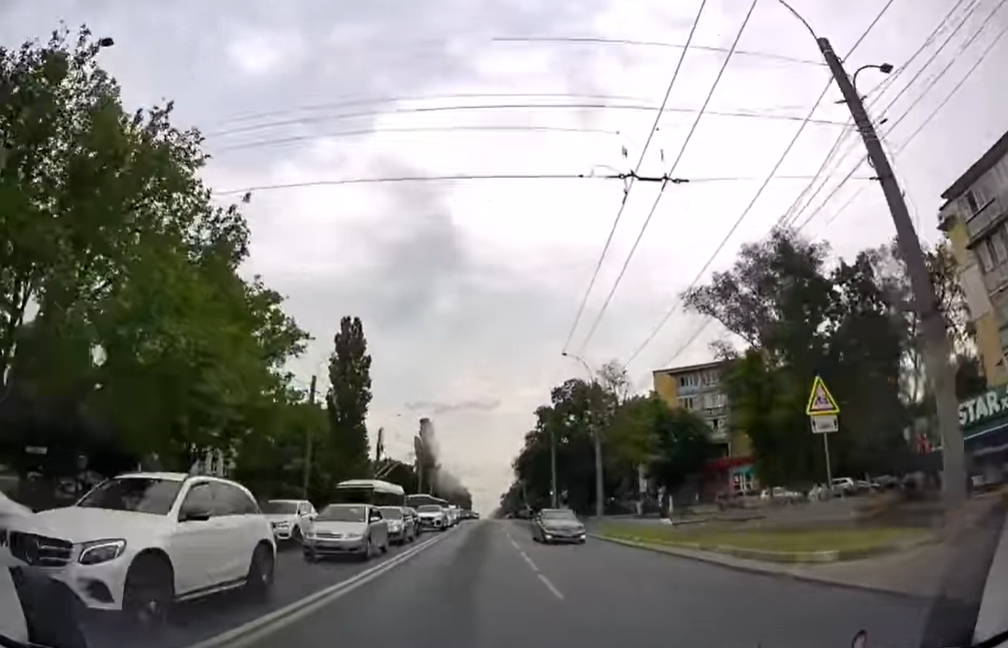 În secvența video se poate observa cum pe strada Kiev din sectorul Rîșcani al Capitalei, cel mai probabil pentru a evita un eventual impact, dar și pentru a evita ambuteiajul, șoferul de la volanul Mercedesului circulă pe banda extremă.