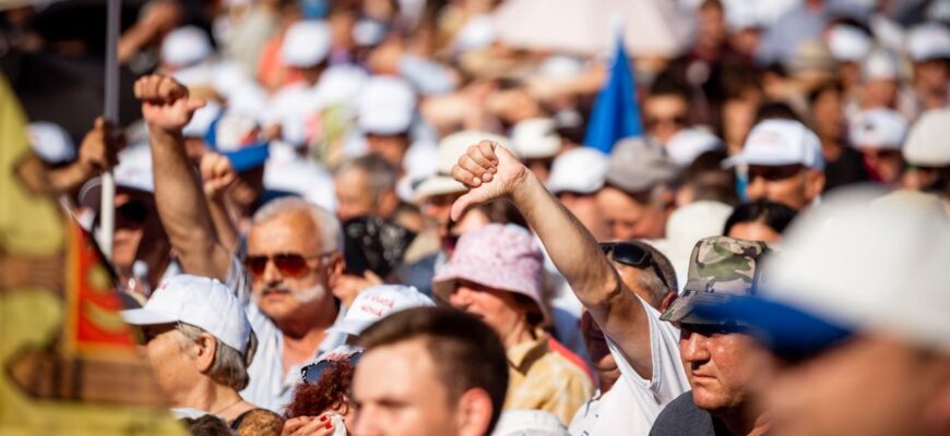Protest de amploare în Capitală! Zeci de mii de oameni s-au adunat astăzi în Piața Marii Adunări Naționale, în cadrul unui protest contra guvernării PAS. Manifestația este organizată de către Mișcarea „O viață nouă”.