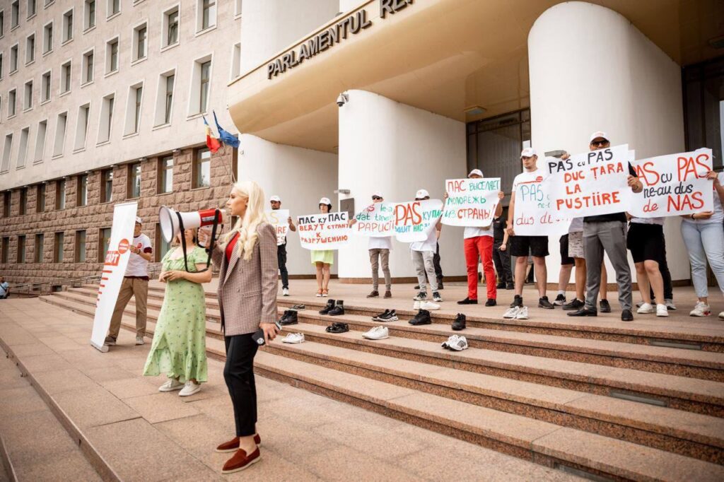 Mai mulți tineri care fac parte din organizația de tineret „START”, creată recent, au organizat un flashmob inedit în fața Parlamentului. În cadrul acestuia, tinerii au lăsat pe scările legislativului mai multe perechi de încălțăminte și mesaje prin care au transmis că actuala guvernare a PAS, în frunte cu Maia Sandu, le-a dat papucii tinerilor. Și asta deoarece, susțin tinerii, politicile promovate de reprezentanții puterii sunt împotriva lor.