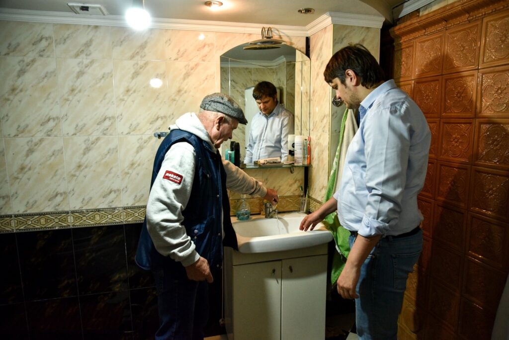 Andrei Spînu a devenit din nou motiv de glume pe rețelele sociale, după ce ministrul a publicat o fotografie în care stă lângă un bătrân și se uită cu interes cum ”curge apa”.