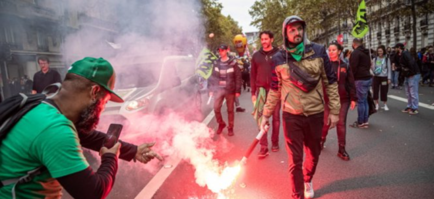 În total, 107.000 de persoane au manifestat în ţară, potrivit Ministerului de Interne, ‘aproape 300.000’, conform confederaţiei sindicale CGT, organizatoarea acestei zile de ‘mobilizare şi grevă’ interprofesională, împreună cu alte sindicate şi organizaţii de tineret.