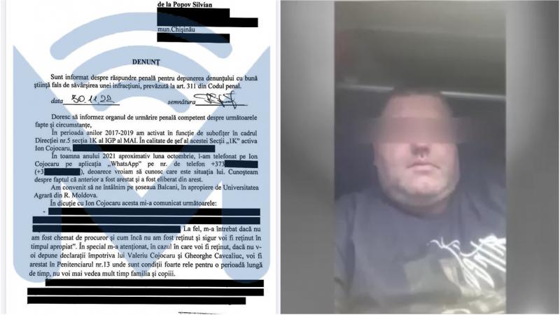 Fostul ofițer al Direcției speciale a depus și un denunț în acest sens la Procuratură. Potrivit documentului, Silvian Popov, în 2021, „a fost amenințat că va fi reținut dacă nu va da declarații împotriva colonelului Valeriu Cojocaru și Gheorghe Cavcaliuc, ex-șeful-adjunct al IGP, va fi ținut la penitenciarul nr. 13 unde sunt condiții foarte rele și i se va interzice o perioadă lungă să se vadă cu familia și copiii”.