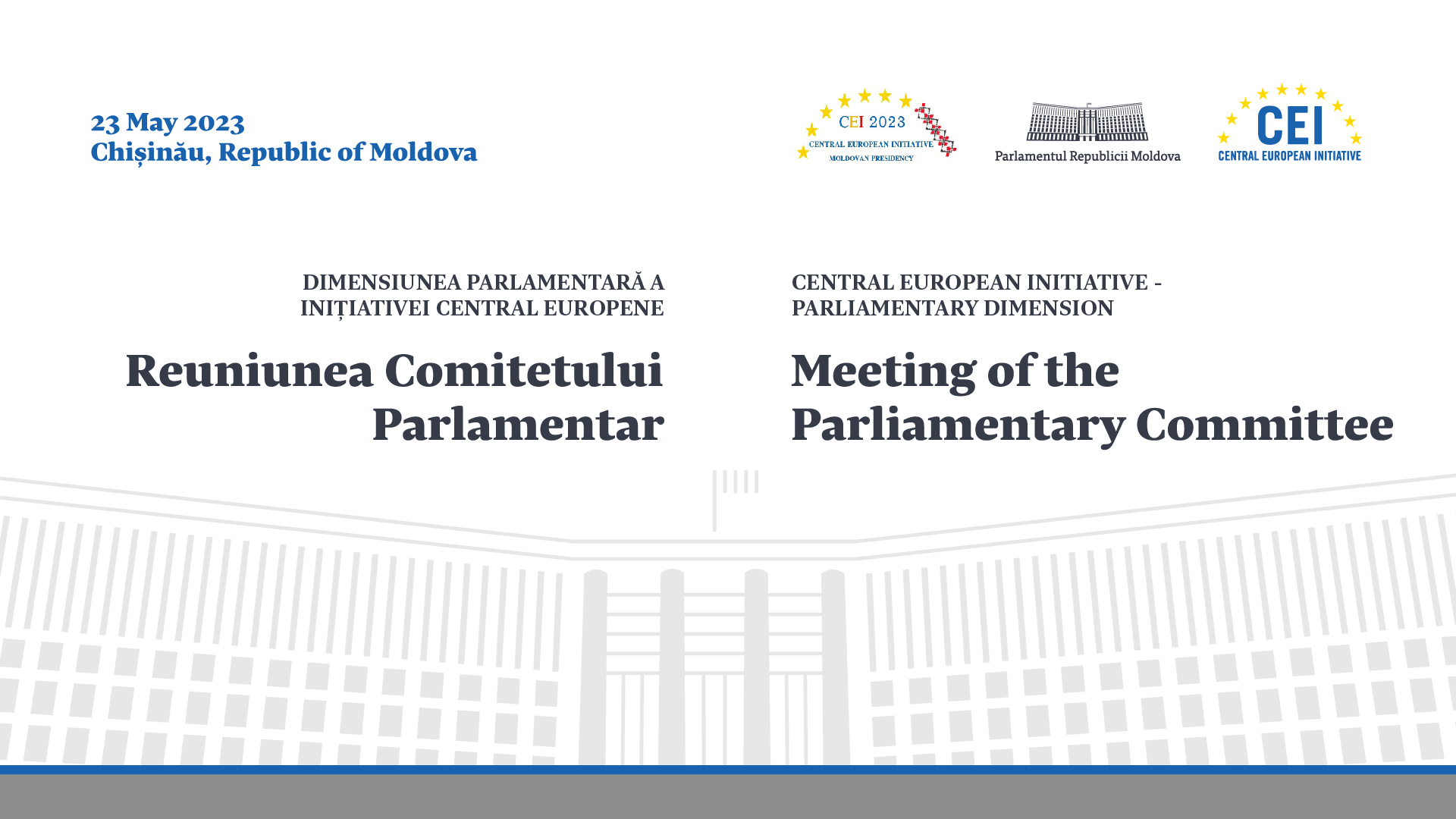 Parlamentul Republicii Moldova va găzdui Reuniunea Comitetului Parlamentar al Dimensiunii Parlamentare a Inițiativei Central Europene (DP a ICE). Evenimentul va avea loc pe data de 23 mai, la Chișinău.