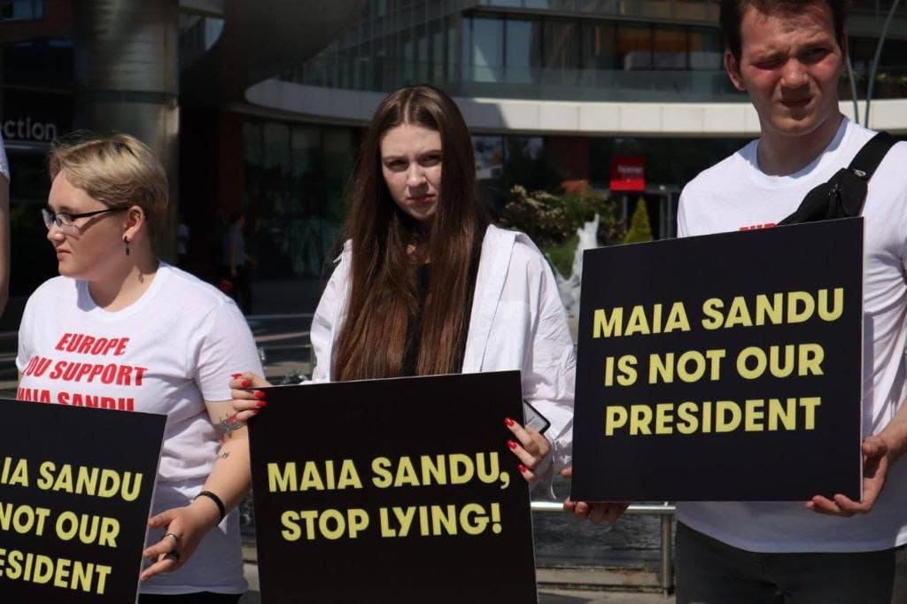 De asemenea, protestatarii poartă pancarte cu următoarele inscripții: „Maia Sandu, încetează să minți”, „Maia Sandu=dictatura”.