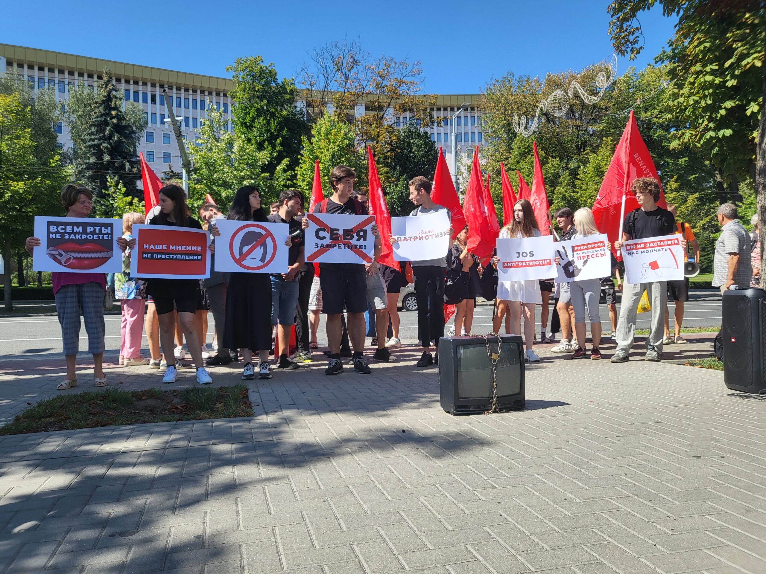 Astăzi, în fața Рreședinției, s-a desfășurat un protest organizat de Partidul „Renaștere” împotriva Centrului pentru comunicare strategică și combaterea dezinformării, denumit „Patriot”. Protestatarii au cerut încetarea cenzurii și persecuției opiniilor care contravin politicilor Partidului Acțiune și Solidaritate (PAS) și a președintei Maia Sandu.