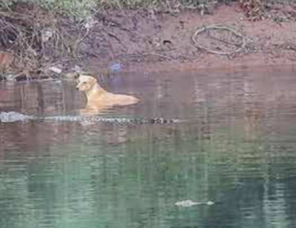 După ce a fost urmărit de o haită de câini sălbatici, câinele și-a găsit refugiu în apele râului Savitri, în statul indian Maharashtra, neștiind că în apele râului se aflau trei crocodili. Doar că, spre surprinderea tuturor, animalul nu a fost văzut ca o pradă de către reptilele periculoase ci, mai degrabă, ca un „amic” în mare nevoie de ajutor.