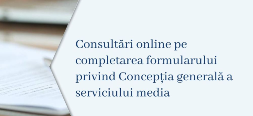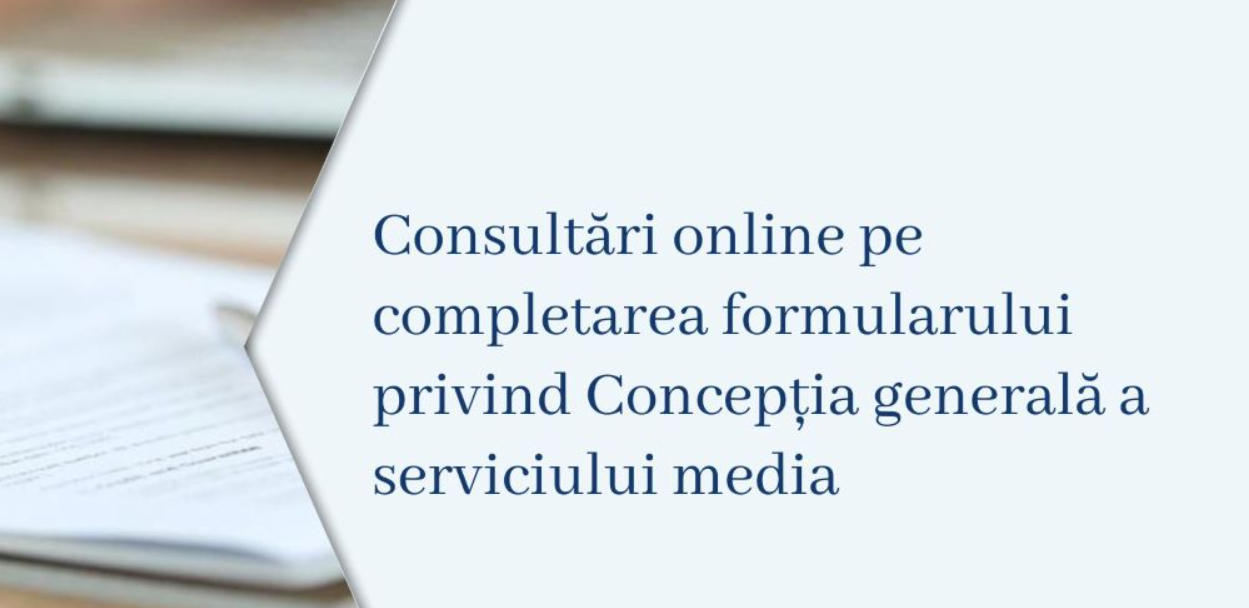 Consiliul Audiovizualului a organizat azi consultări online, cu reprezentanții furnizorilor de servicii media, referitoare la prevederile noului Regulament cu privire la licența de emisie, în special a modului de completare a formularului privind Concepția generală a serviciului media audiovizual.
