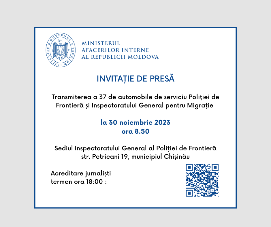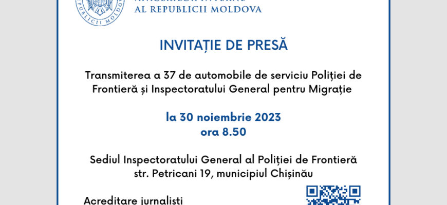 Jurnaliștii care vor da curs invitației sunt așteptați la sediul Inspectoratului General al Poliției de Frontieră: str. Petricani 19, mun. Chișinău.
