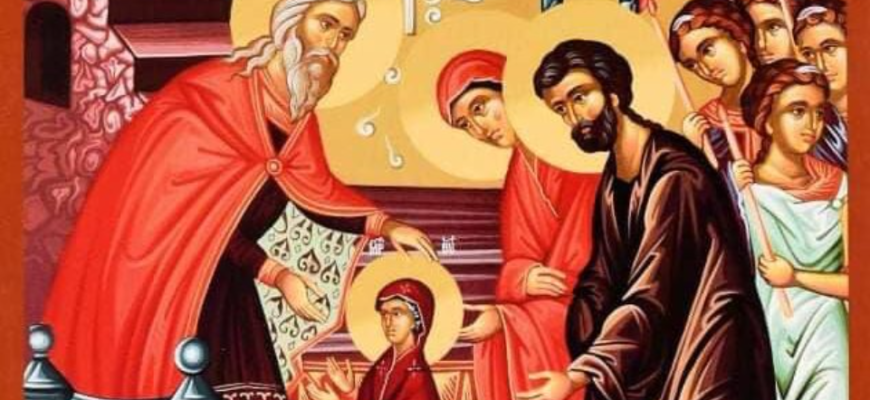 Această sărbătoare amintește de momentul când Fecioara Maria, în vârstă de 3 ani, a fost adusă de părinţii săi, Ioachim şi Ana, la Templul din Ierusalim.