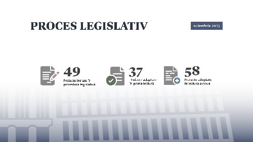 Parlamentul Republicii Moldova a adoptat, în luna noiembrie, 95 de acte normative. În aceeași perioadă, în procedură legislativă au intrat 49 de acte.