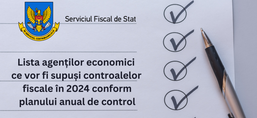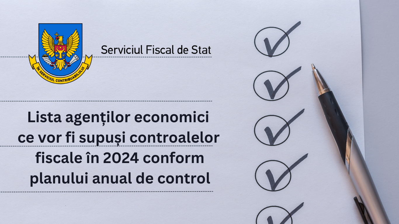 Serviciul Fiscal de Stat a publicat pe pagina-web oficială lista agenților economici ce vor fi supuși controalelor fiscale conform planului anual de control pentru perioada anului 2024, precum și Strategia de control pentru anul viitor.