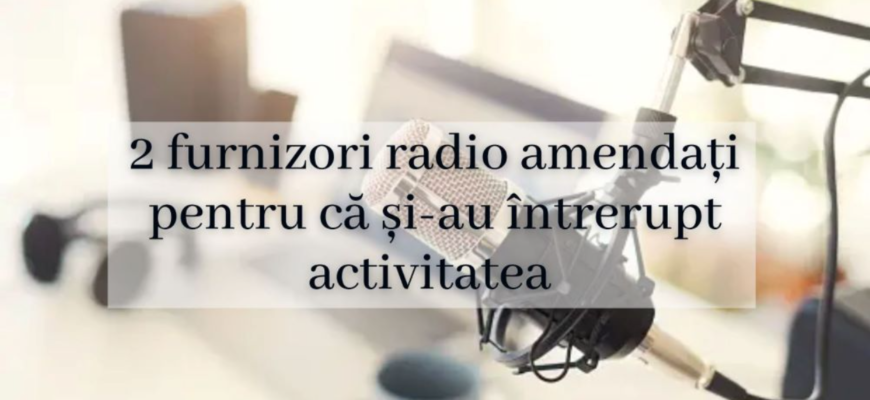 Consiliul Audiovizualului a sancționat în ședința de azi fondatorii posturilor radio Datina FM și Drive FM pentru întreruperea nemotivată, în mod repetat, a activității timp de 12 luni, cu două amenzi în sumă de 50 000 de lei.