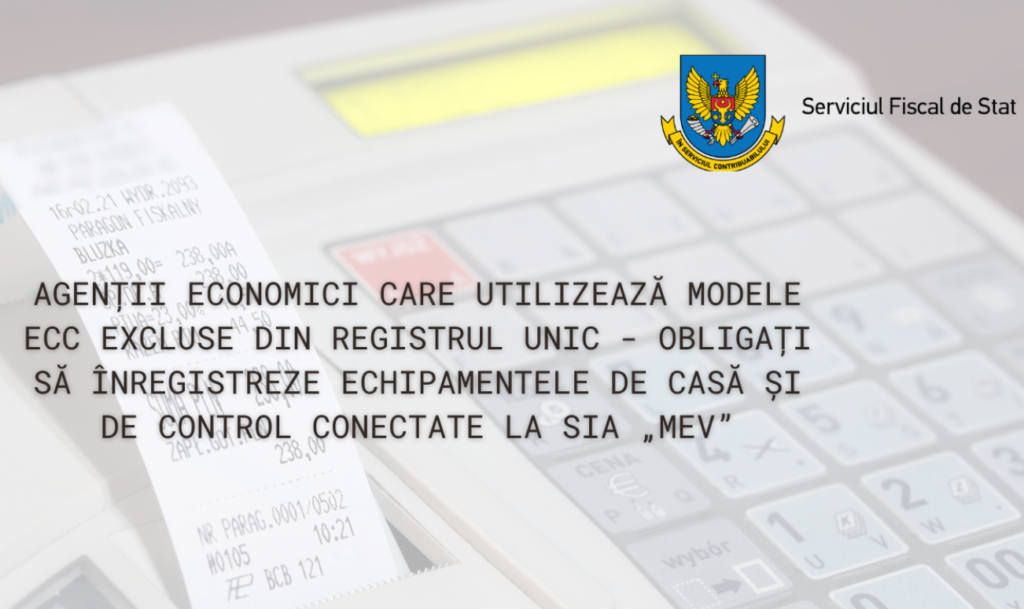 Totodată, contribuabilii respectivi au obligația să înregistreze ECC conectate la SIA „Monitorizarea electronică a vânzărilor”, conform procedurii stabilite prin Regulamentul cu privire la modul de evidență şi sigilare a echipamentelor de casă şi de control, aprobat prin Ordinul SFS nr. 632/2020.