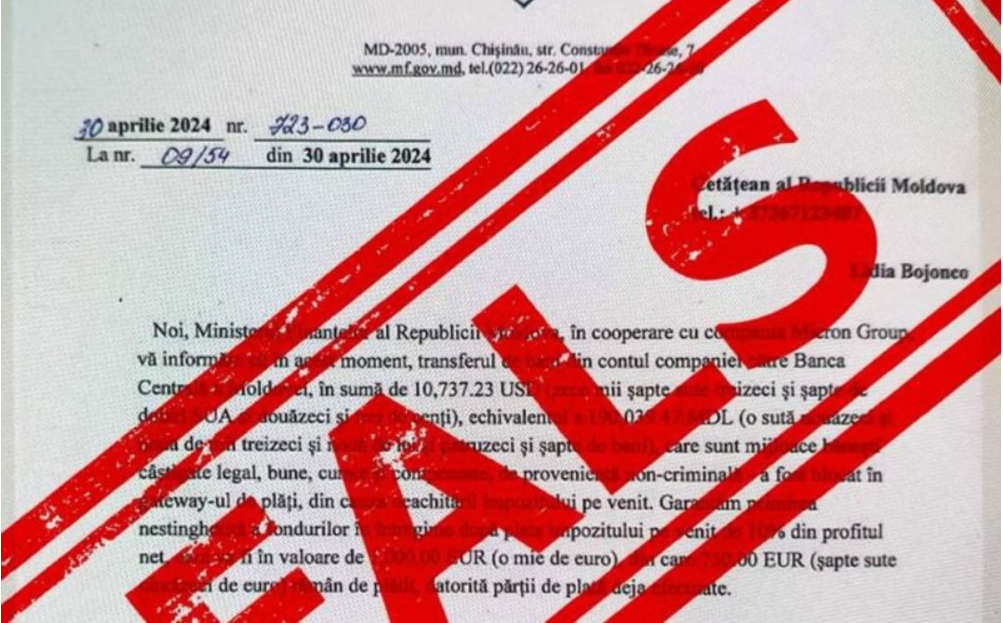 Ministerul Finanțelor avertizează despre scrisori false transmise din numele instituției cu scop de înșelăciune, care se manifestă prin pretinsa solicitare de a achita impozitul pe venit, urmare a blocării unor transferuri financiare.