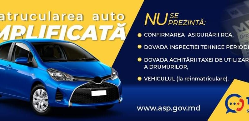 Procedura de înmatriculare a automobilelor a fost simplificată. Anunțul a fost făcut de Mrcea Eșanu, directorul Agenției Servicii Publice (ASP).