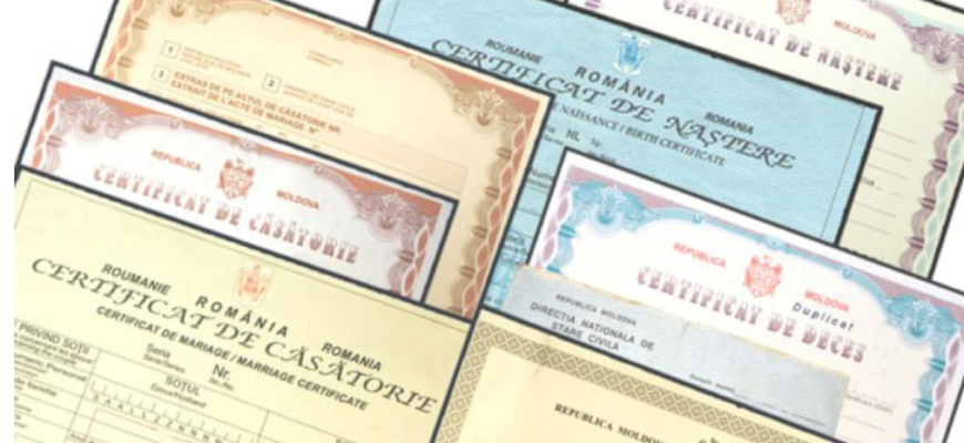 Pe teritoriul Republicii Moldova sunt recunoscute fără a fi supralegalizate sau apostilate documentele de stare civilă emise în străinătate, după cum urmează: