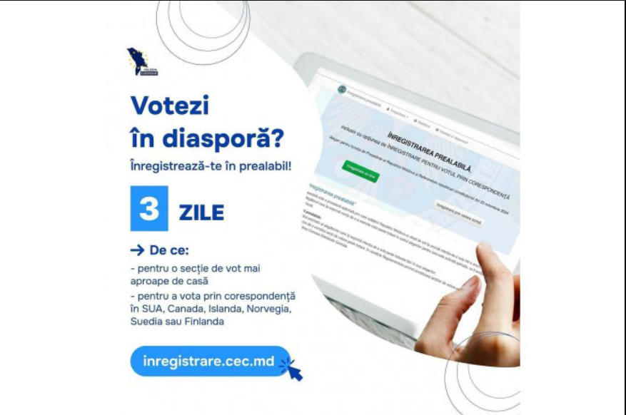 Înregistrarea poate fi efectuată pe adresa: https://inregistrare.cec.md. Termenul limită pentru înregistrarea prealabilă este 6 septembrie 2024.
