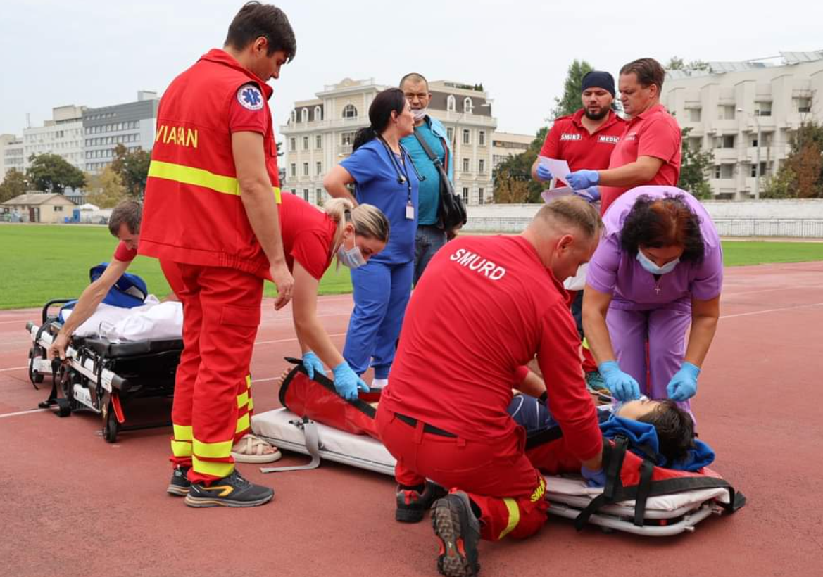Elicopterul a aterizat la ora 10:18 pe stadionul Dinamo din municipiul Chișinău, de unde medicii și paramedici SMURD au preluat pacientul.