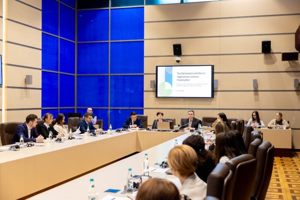 Expertul s-a referit la aspecte-cheie și proceduri specifice în procesul de negociere, mecanismele create și aplicate de către Parlamentul macedonean, experiența Macedoniei de Nord în procesul de lucru cu oficialii UE etc.