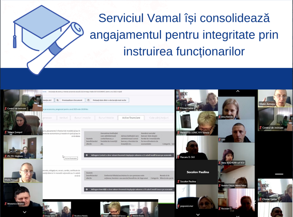 Ne asigurăm că angajații noștri sunt bine pregătiți pentru a respecta și aplica regulile privind declarațiile de avere și interese personale, consolidând astfel un climat bazat pe corectitudine și siguranță”, declară Alexandru Iacub, directorul Serviciului Vamal.