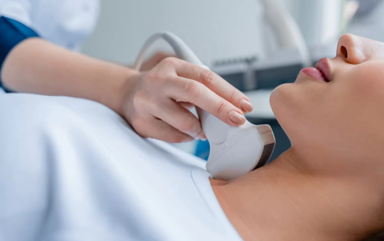 Medicul examinează gâtul pentru depistarea umflăturilor vizibile sau palpabile. Prezența unor noduli duri, neregulați sau creșterea rapidă poate indica malignitate și necesită teste suplimentare.