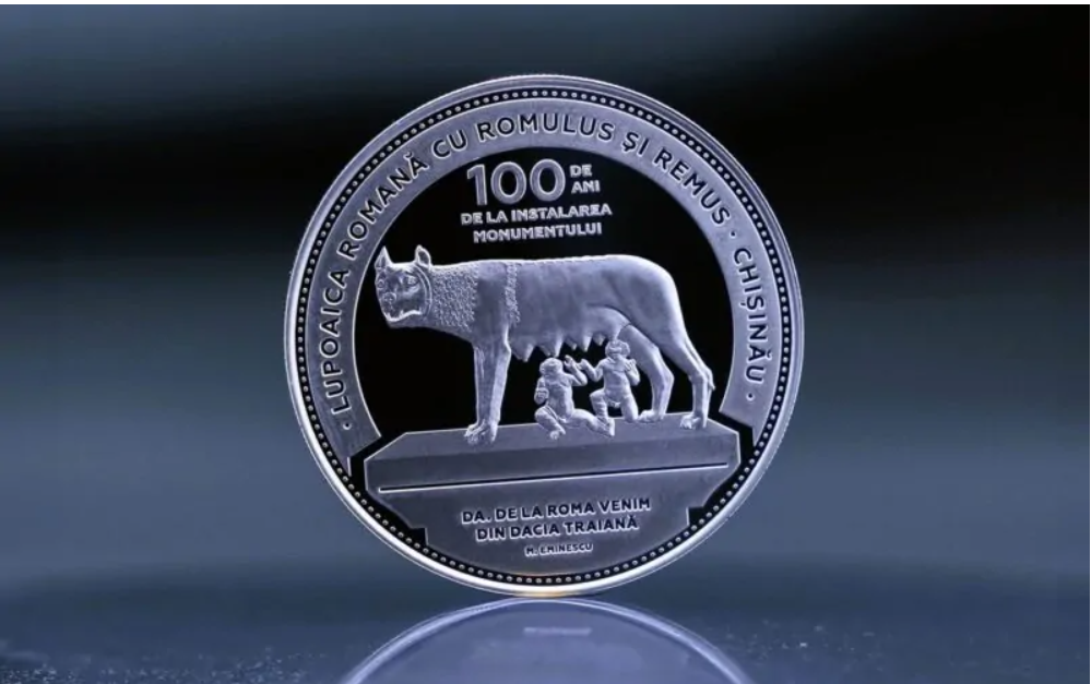 Potrivit BNM, moneda este dedicată celebrării centenarului primei instalări a statuii Lupoaicei Romane la Chișinău, un simbol al legăturii istorice și culturale dintre Moldova și tradiția romană.