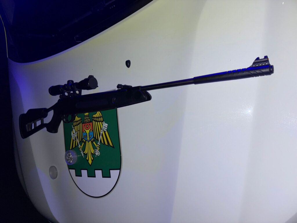 În urma intervenției și a verificărilor efectuate, a fost identificat un bărbat, în vârstă de 36 de ani, care avea asupra sa o armă cu țeavă lungă, dotată cu lunetă. Acesta nu a putut prezenta acte de identitate sau documente care să ateste legalitatea deținerii și portului armei de foc.