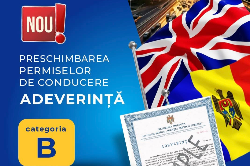 Agenția Servicii Publice (ASP) a anunțat eliberarea unui nou model de Adeverință (Certificate of Entitlement), în limba engleză, necesar cetățenilor Republicii Moldova aflați în Marea Britanie care solicită preschimbarea permisului de conducere categoria B. Documentul a fost ajustat pentru a corespunde noilor cerințe ale autorităților britanice.