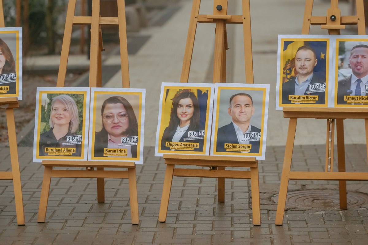 În cadrul acțiunii au fost expuse fotografiile consilierilor municipali PAS și PSRM, însoțite de mesaje precum „fug de responsabilitate” și „rușine!”, pentru a arăta clar cine sunt cei care chiulesc de la ședințe și blochează intenționat activitatea CMC.