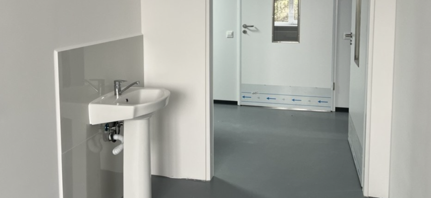 Lucrările au constat în montarea pardoselilor, a ușilor noi și a tavanelor, grunduirea, tencuirea și vopsirea pereților și tavanelor, montarea rețelelor de încălzire, electricitate, apă canalizare și de ventilație, montarea lavoarelor, vaselor pentru closet și cabinelor pentru duș etc.