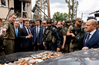 Preşedintele francez Emmanuel Macron, cancelarul german Olaf Scholz şi premierul italian Mario Draghi, cărora li s-a alăturat şi preşedintele României