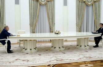 Vladimir Putin și Emmanuel Macron au stat la o masă lungă de patru metri, la întâlnirea care a avut loc luni, Moscova, după ce președintele francez a refuzat